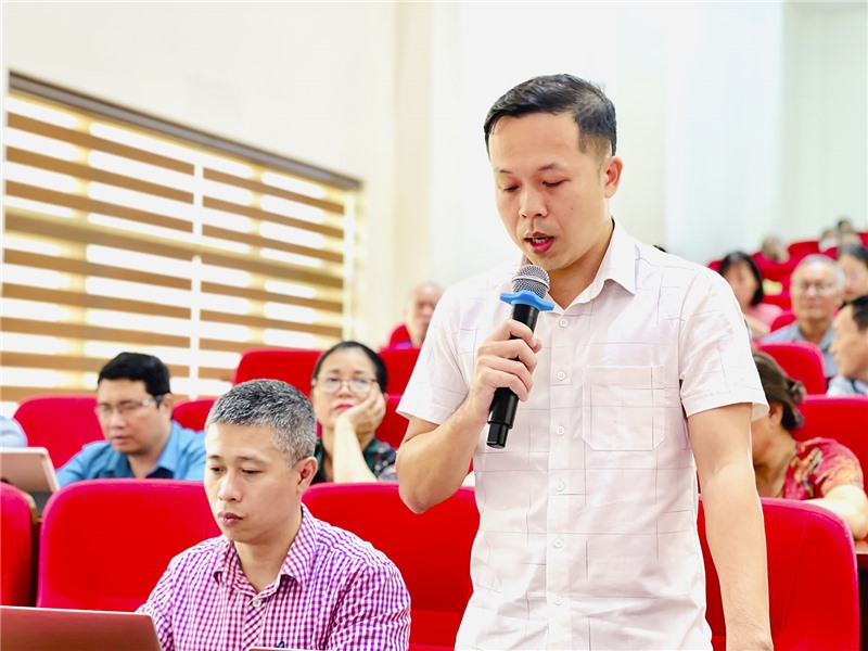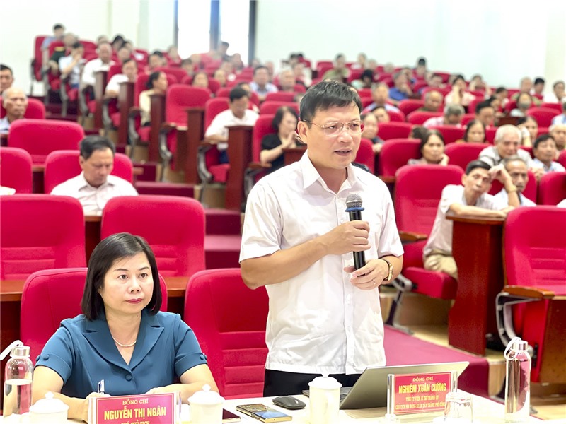 Cử tri nêu ý kiến tại hội nghị tiếp xúc.