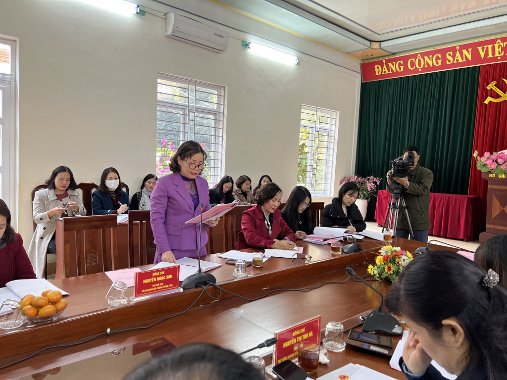 Đồng chí Nguyễn Thị Thu Hà, Phó trưởng Đoàn ĐBQH tỉnh phát biểu tại buổi làm việc với TP Uông Bí.