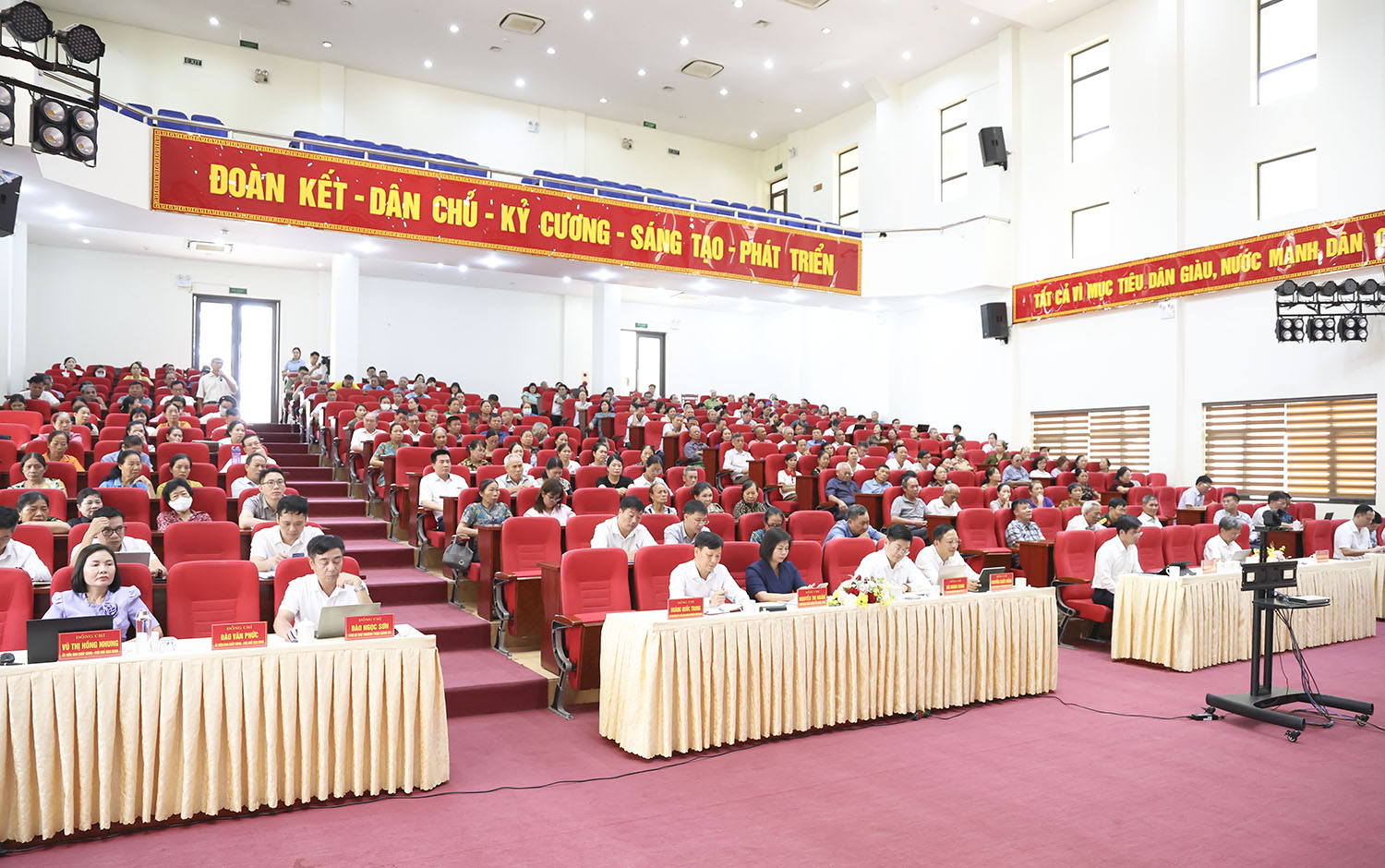 Tại hội nghị, đồng chí Vũ Hồng Thanh, Ủy viên Trung ương Đảng, Phó Chủ tịch Quốc hội thông tin đến cử tri kết quả Kỳ họp thứ 9, Quốc hội khóa XV - kỳ họp có ý nghĩa đặc biệt về chính trị, pháp lý và phát triển đất nước. Quốc hội đã thông qua 34 luật, 14 nghị quyết, trong đó có những nội dung mang tính bước ngoặt như sửa đổi, bổ sung Hiến pháp và quyết nghị việc sắp xếp các đơn vị hành chính cấp tỉnh, cấp xã; thống nhất rút ngắn nhiệm kỳ của Quốc hội khóa XV và HĐND các cấp.