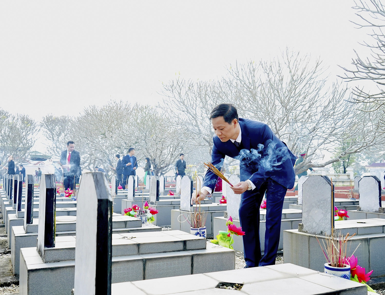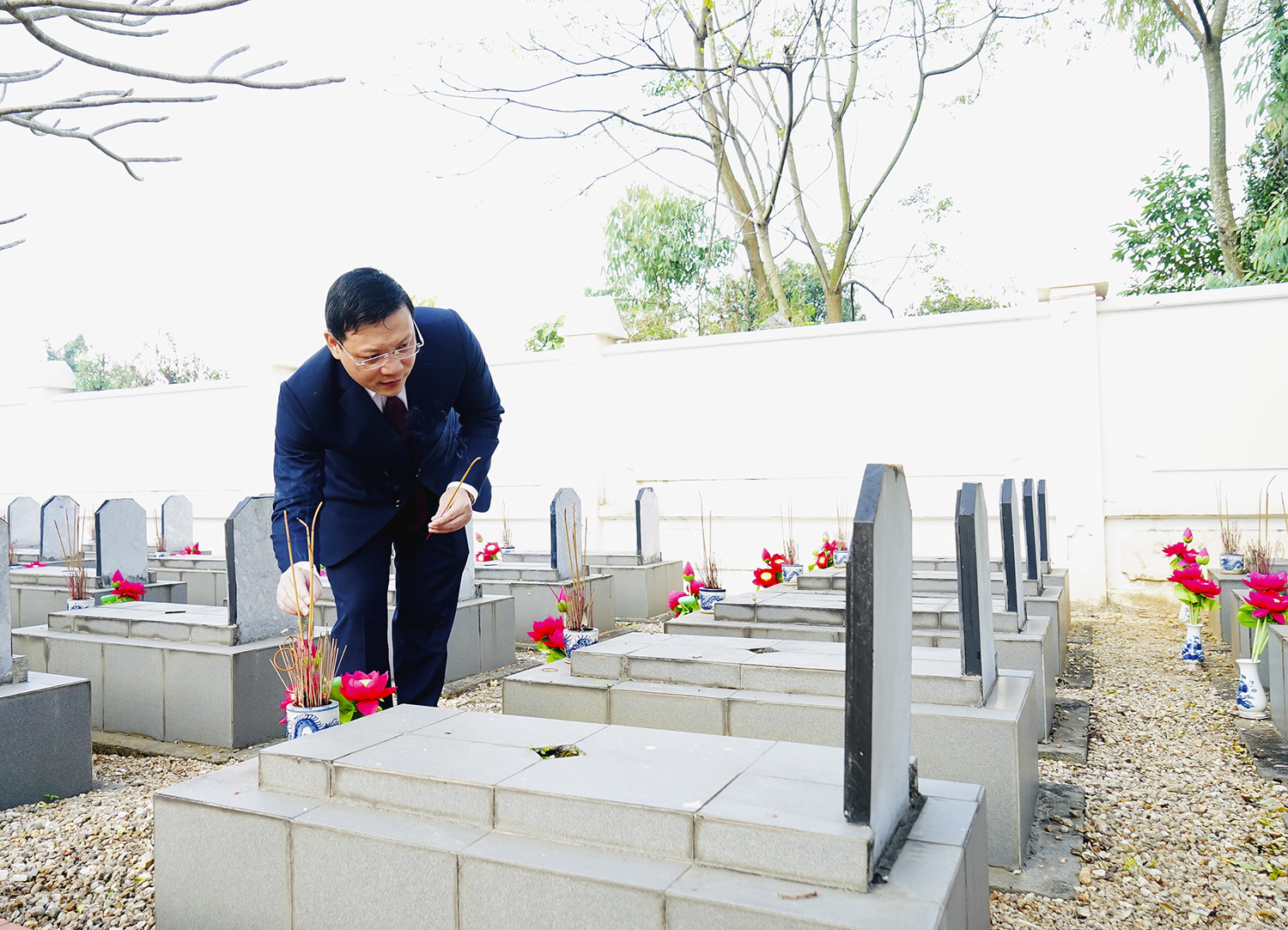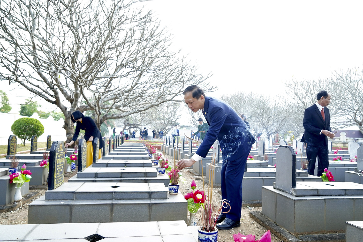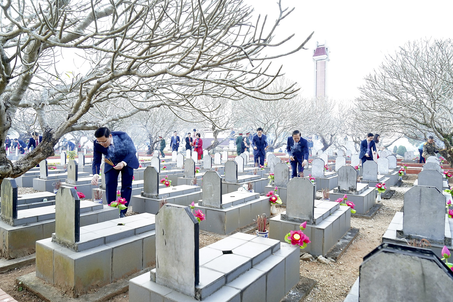 Lãnh đạo Thành ủy, HĐND, UBND dâng hương tại Nghĩa trang liệt sỹ thành phố.