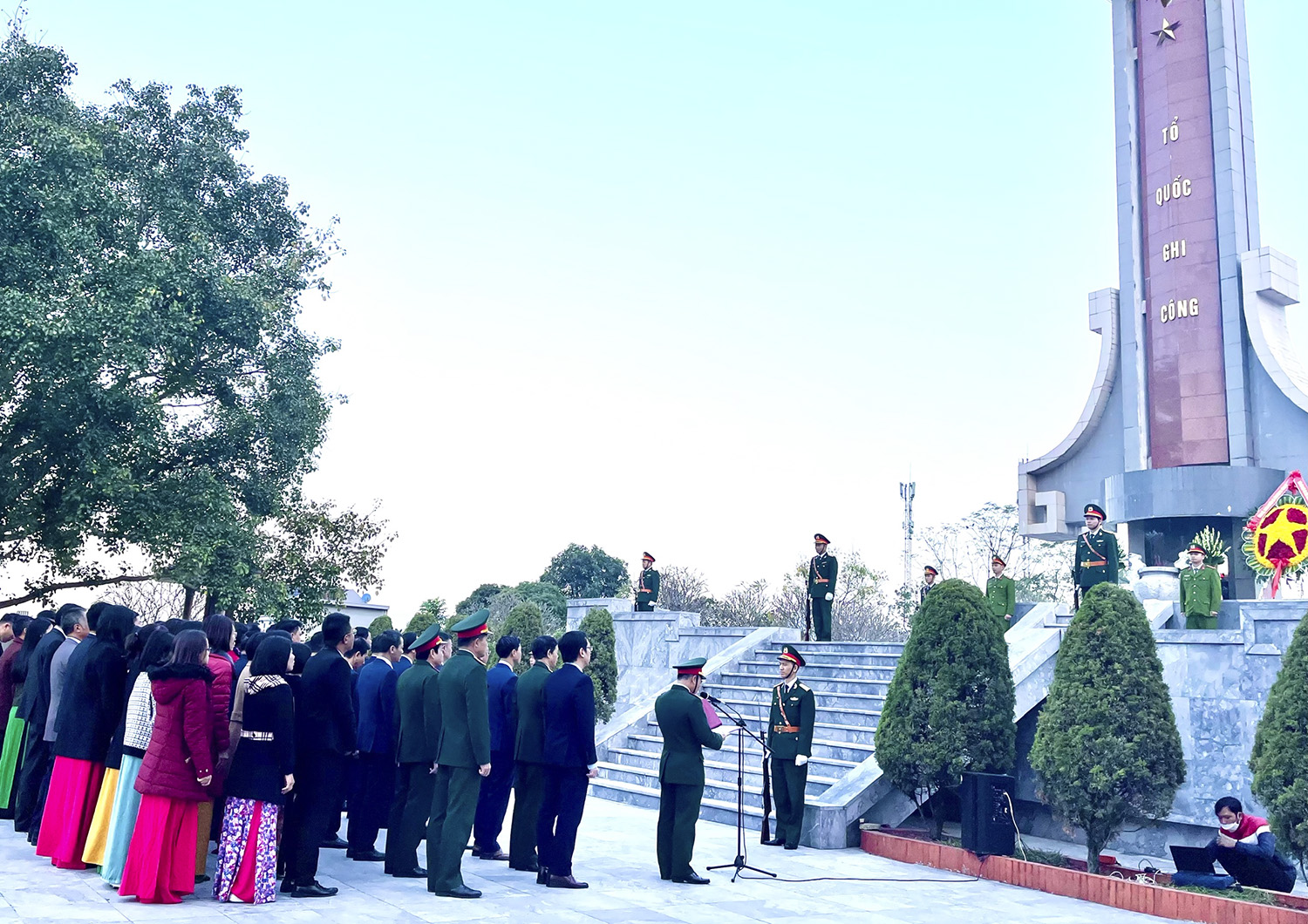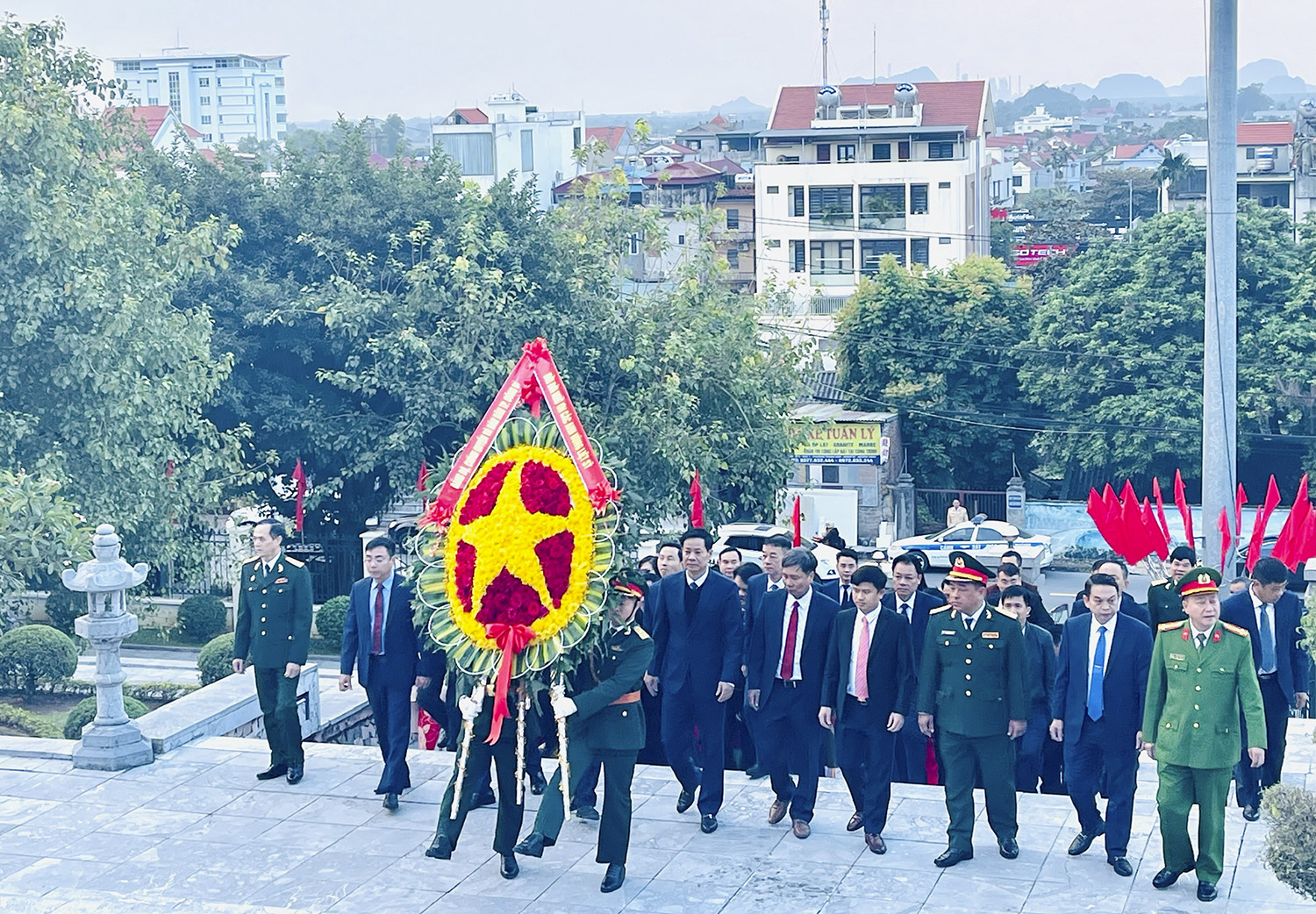 Sáng nay 21-12, đoàn đại biểu Thành ủy, HĐND, UBND, Ủy ban MTTQ Việt Nam và các phòng, ban, ngành, đoàn thể thành phố do đồng chí Nghiêm Xuân Cường, Tỉnh ủy viên, Bí thư Thành ủy, Chủ tịch HĐND thành phố làm trưởng đoàn đã đến dâng hương và đặt hoa tại Nghĩa trang liệt sỹ thành phố nhân kỷ niệm 78 năm Ngày thành lập Quân đội nhân dân Việt Nam và 33 năm Ngày Hội Quốc phòng toàn dân (22-12).
