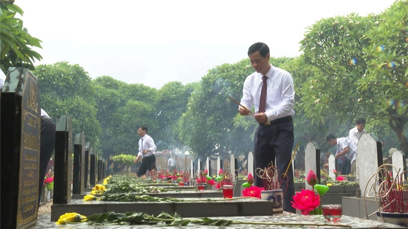 Lãnh đạo thành phố thắp hương tại các phần mộ liệt sỹ.