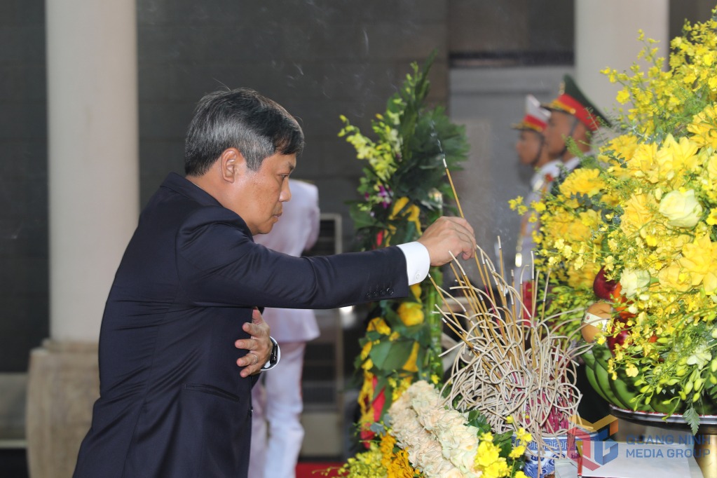 Trong niềm tiếc thương vô hạn, Đoàn đại biểu tỉnh Quảng Ninh thành kính thắp hương và dành phút mặc niệm tưởng nhớ đồng chí Trần Đức Lương, người chiến sỹ cộng sản kiên trung, người lãnh đạo đáng kính, mẫu mực, nhà khoa học tài năng, tấm gương đạo đức sáng ngời, suốt đời tận tụy vì nước, vì dân.