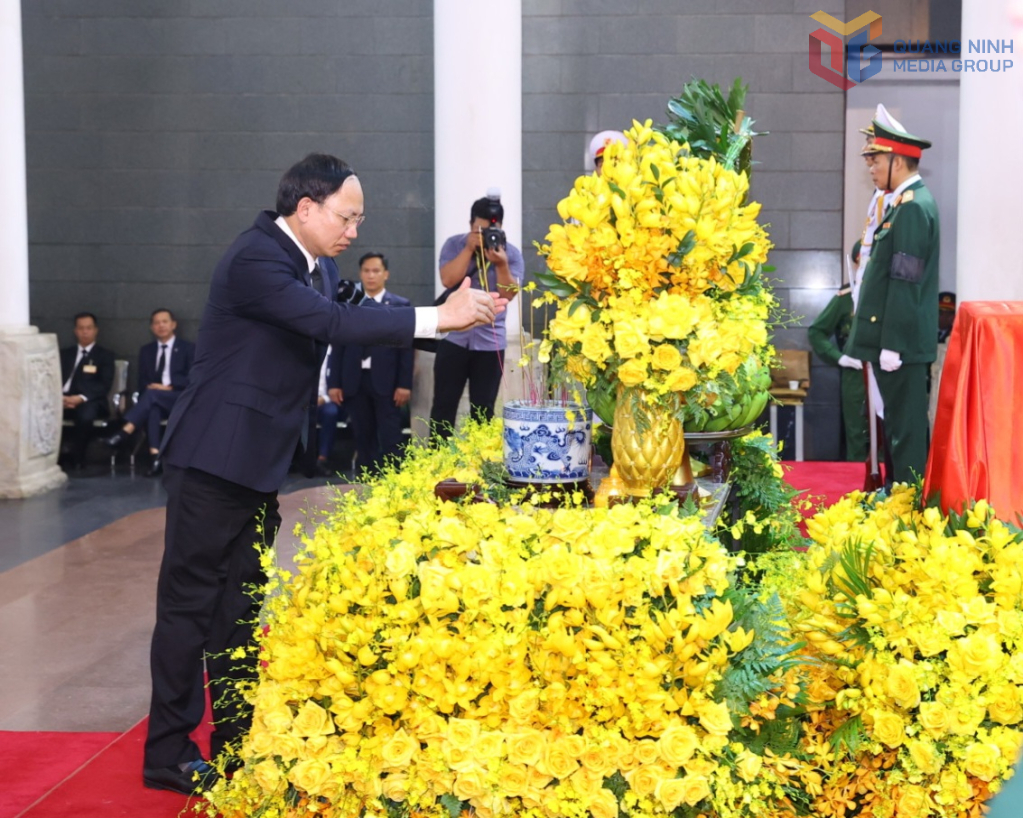 Đoàn đại biểu của Tỉnh ủy, HĐND, UBND, Ủy ban MTTQ tỉnh và Đoàn ĐBQH tỉnh Quảng Ninh do đồng chí Nguyễn Xuân Ký, Ủy viên Trung ương Đảng, Bí thư Tỉnh ủy, Chủ tịch HĐND tỉnh, làm trưởng đoàn, vào viếng Tổng Bí thư Nguyễn Phú Trọng.