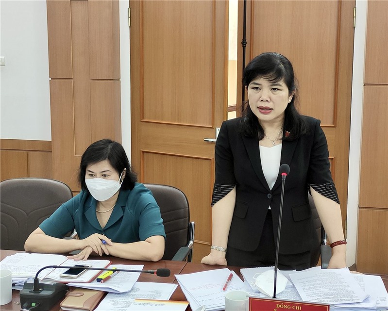 Đồng chí Nguyễn Thị Thu Hà, Tỉnh ủy viên, Phó trưởng đoàn ĐBQH tỉnh Quảng Ninh phát biểu tại buổi làm việc.