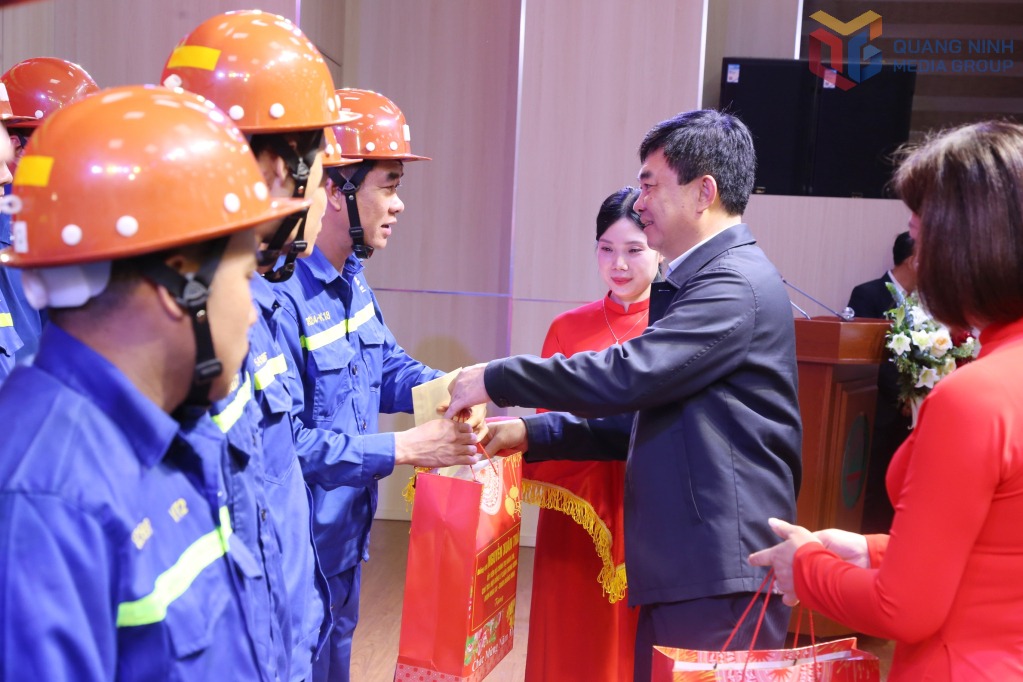 Đồng chí Ngô Hoàng Ngân, Bí thư Đảng ủy, Chủ tịch Hội đồng thành viên Tập đoàn Công nghiệp Than – Khoáng sản Việt Nam, ĐBQH tỉnh, tặng quà, chúc Tết người lao động Công ty Than Uông Bí.