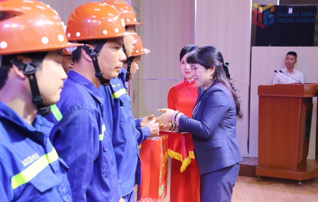 Đồng chí Nguyễn Thị Thu Hà, Phó Trưởng Đoàn ĐBQH tỉnh, tặng quà, chúc Tết người lao động Công ty Than Uông Bí.