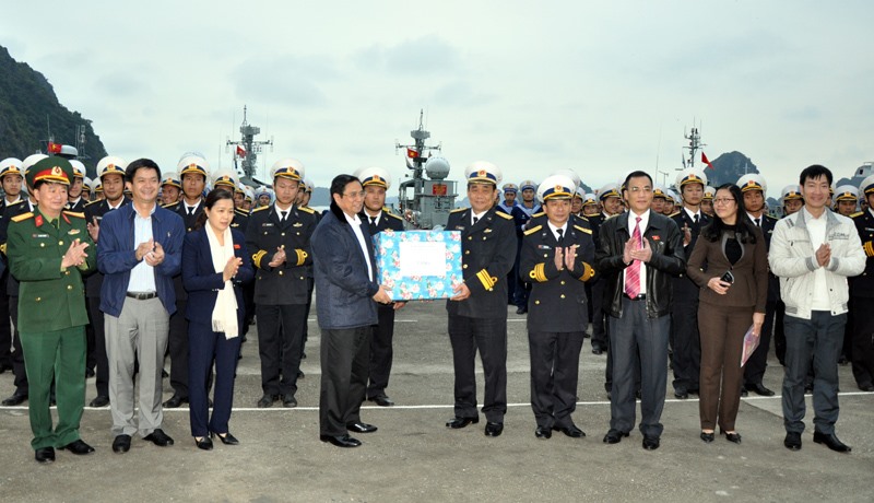 Đồng chí Phạm Minh Chính, Uỷ viên Bộ Chính trị, Bí thư Trung ương Đảng, Trưởng Ban Tổ chức Trung ương, ĐBQH tỉnh khóa XIV trao tặng quà Tết cho cán bộ, chiến sĩ Lữ đoàn Hải quân 170.