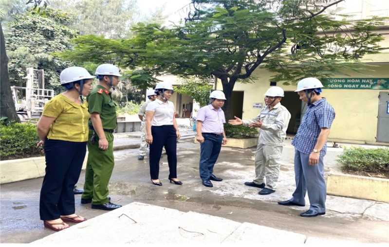 Đoàn giám sát của HĐND thành phố Uông Bí đến kiểm tra việc chấp hành các quy định về bảo vệ môi trường tại Công ty cổ phần Xi măng và Xây dựng Quảng Ninh