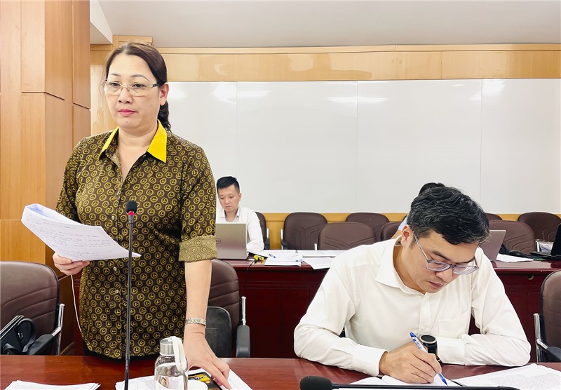 Thành viên đoàn giám sát HĐND tỉnh phát biểu tại buổi làm việc.
