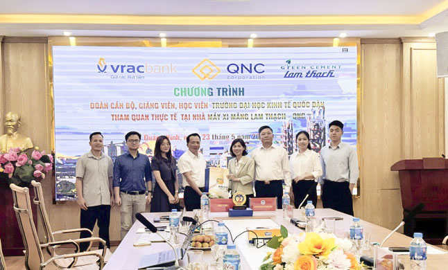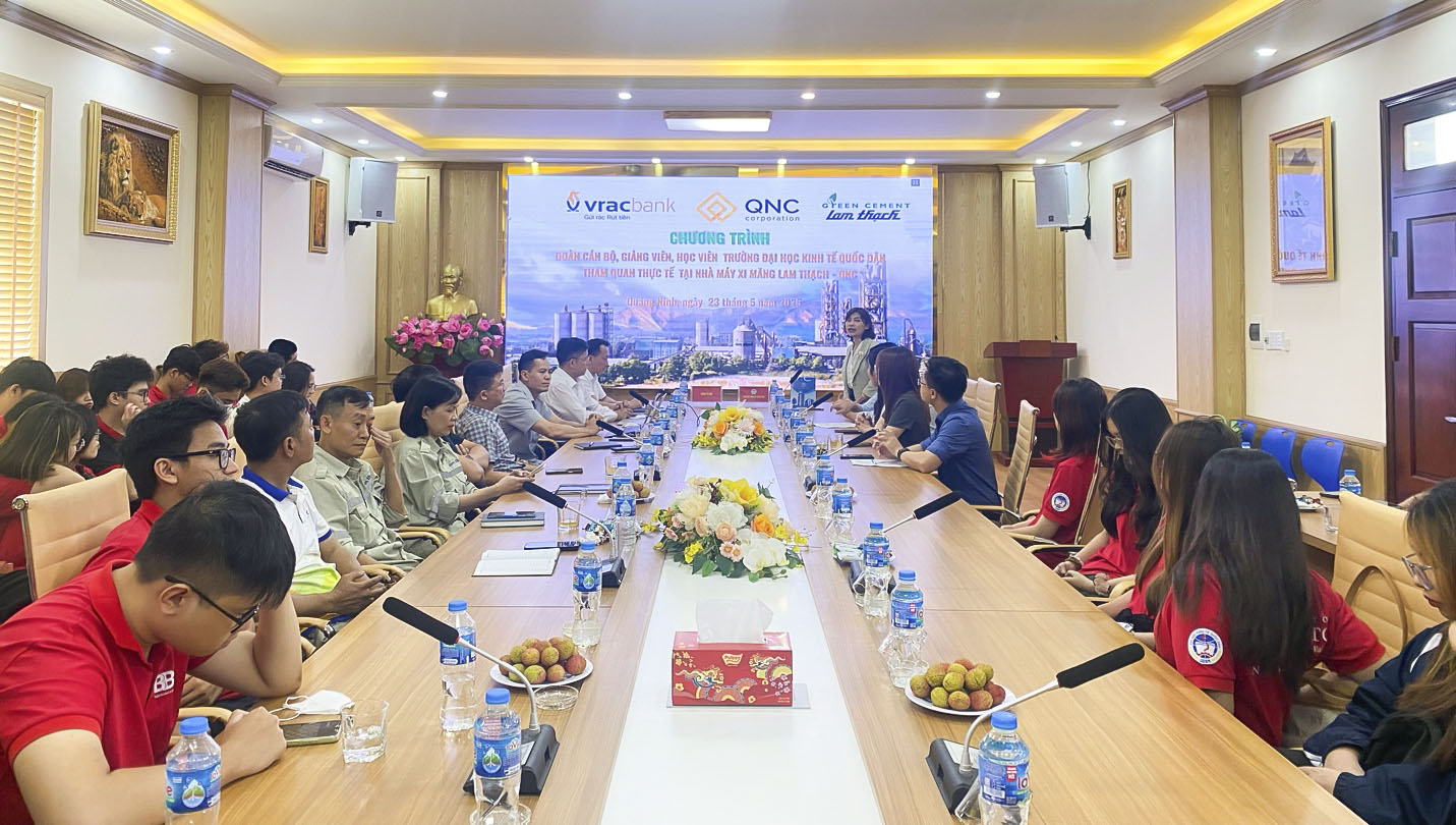Ngày 23/05/2025, Công ty Cổ phần Xi măng và Xây dựng Quảng Ninh (QNC) đã vinh dự đón tiếp đoàn Giảng viên và sinh viên Đại học Kinh tế quốc dân (NEU) đến thăm và làm việc. Đoàn do Tiến sỹ Nguyễn Bích Ngọc: Viện Thương mại và Kinh tế quốc tế – làm trưởng đoàn. Đại diện phía Công ty có ông Nguyễn Trường Giang – Phó Tổng Giám đốc, cùng các cán bộ chủ chốt tham gia tiếp đón.
