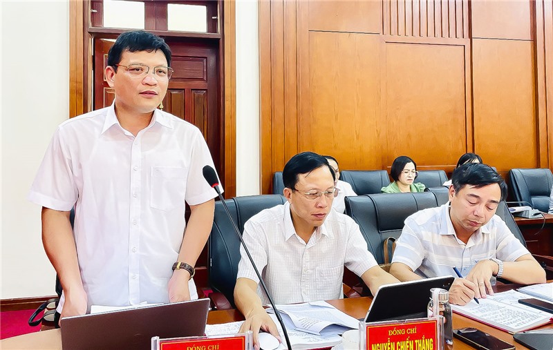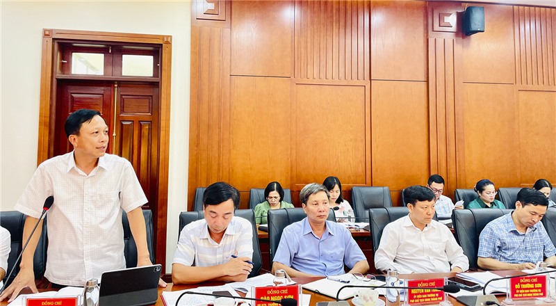 Đồng chí Nghiêm Xuân Cường, Tỉnh uỷ viên, Bí thư Thành uỷ, Chủ tịch HĐNĐ thành phố phát biểu tại buổi làm việc.