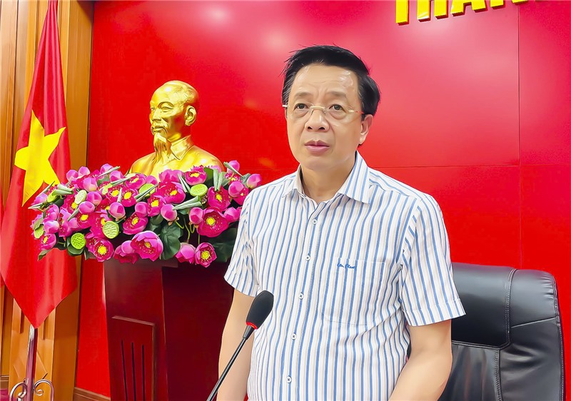 Đồng chí Nguyễn Chiến Thắng, PBT Thường trực Thành uỷ phát biểu tại buổi làm việc.