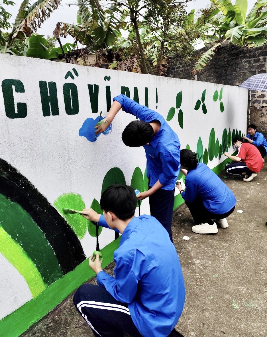 Đoàn phường huy động đoàn viên ủng hộ ngày công, kinh phí thực hiện công trình thanh niên là bức tranh tường rộng 40m2, trị giá 10 triệu đồng tại khu 9 phường Bắc Sơn.