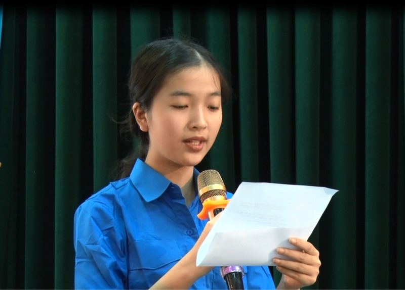 Đại diện lớp đoàn viên mới lên phát biểu, hứa quyết tâm.