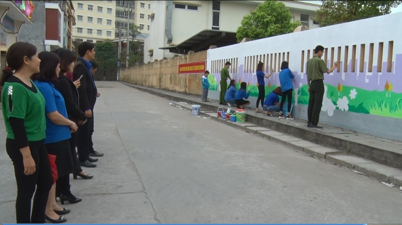 Tham quan công trình vẽ tranh tường của Cụm đoàn phường Trưng Vương.