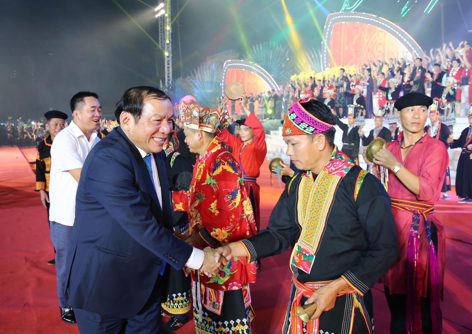 Bộ trưởng Bộ Văn hóa, Thể thao và Du lịch Nguyễn Văn Hùng chúc mừng đoàn Quảng Ninh. Ảnh: Sở VH-TT cung cấp.