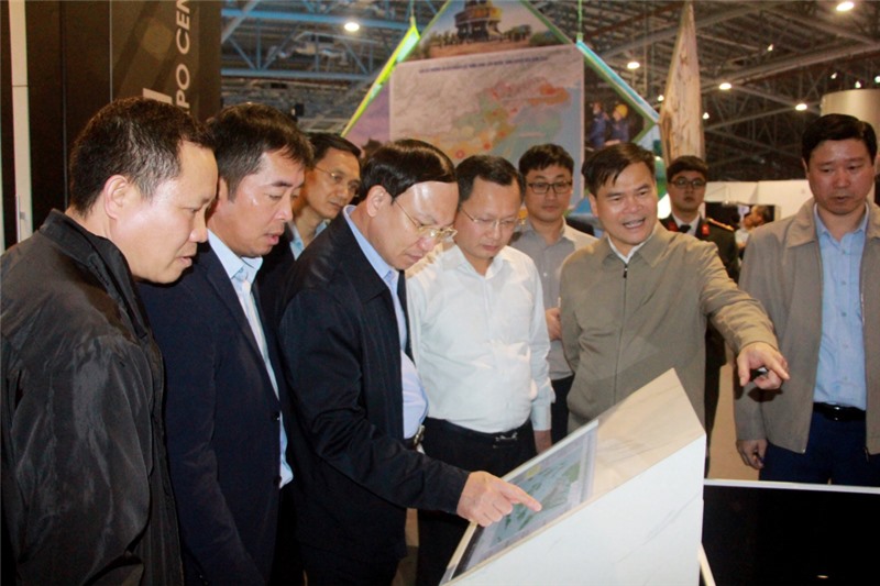 Đồng chí Nguyễn Xuân Ký, Bí thư Tỉnh ủy, Chủ tịch HĐND tỉnh kiểm tra khu vực trình chiếu, giới thiệu Quy hoạch tỉnh Quảng Ninh thời kỳ 2021-2030, tầm nhìn đến 2050. Ảnh: Thu Chung