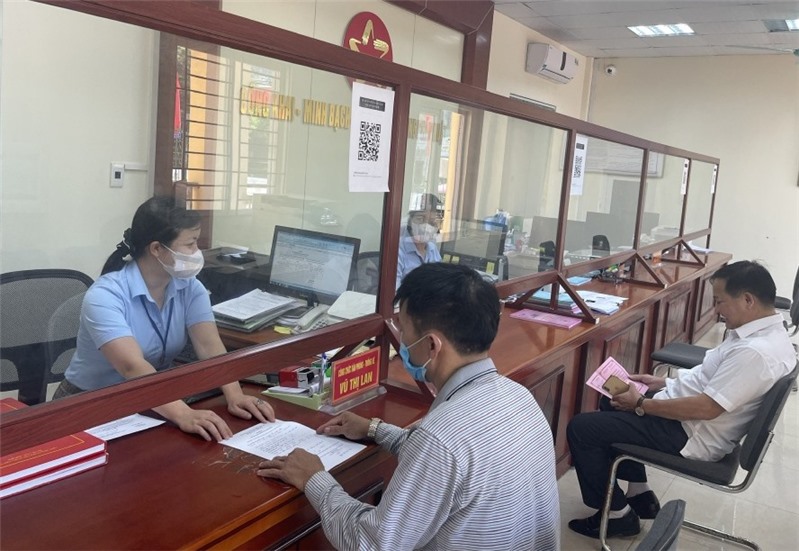 Cán bộ Bộ phận tiếp nhận và trả kết quả hiện đại phường Minh Thành (TX Quảng Yên) hướng dẫn công dân giải quyết thủ tục hành chính.