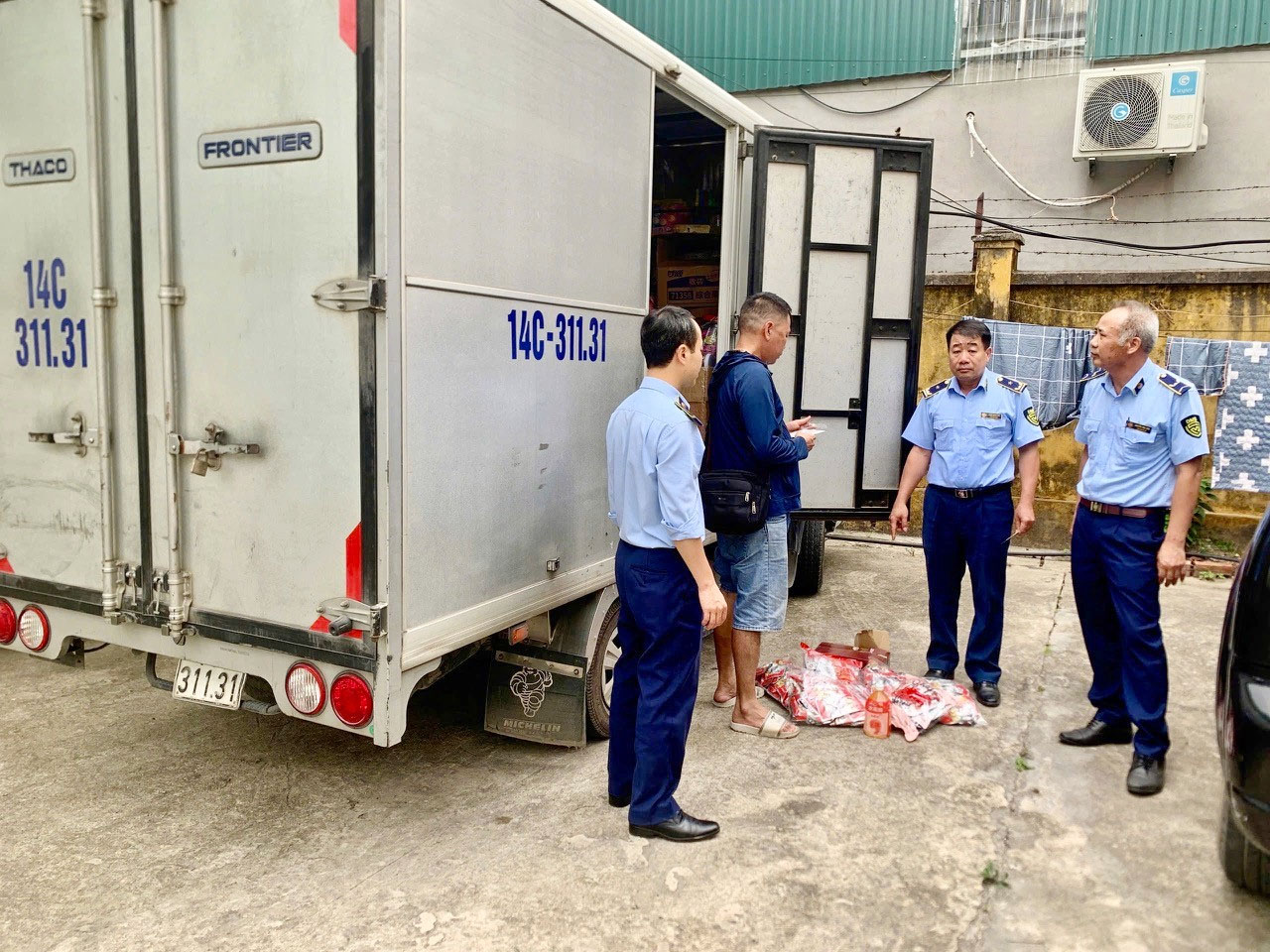 Đội Quản lý thị trường số 6 kiểm tra, xử lý phương tiện vận chuyển hàng hóa là thực phẩm nhập lậu.