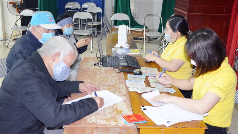 Cán bộ hưu trí lĩnh lương hưu tại Nhà văn hóa phường Hồng Hải (TP Hạ Long).