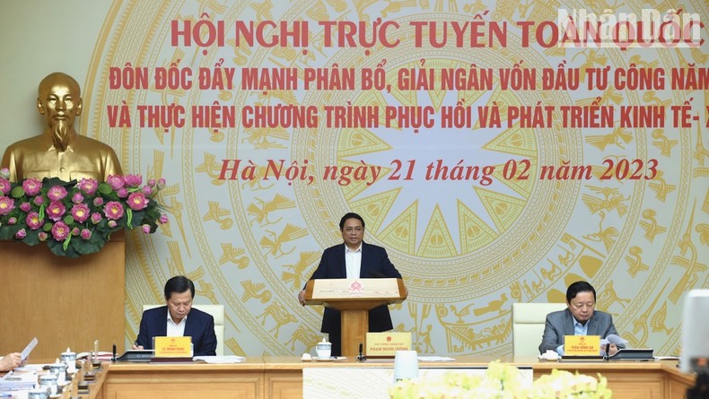 Sáng 21/2, tại Trụ sở Chính phủ, Thủ tướng Phạm Minh Chính chủ trì Hội nghị trực tuyến toàn quốc về đôn đốc, đẩy mạnh phân bổ, giải ngân vốn đầu tư công năm 2023 và thực hiện Chương trình phục hồi và phát triển kinh tế-xã hội.
