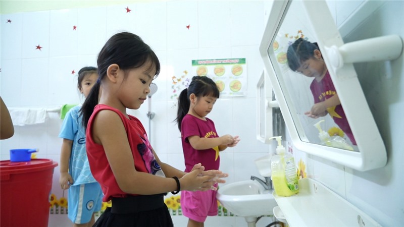 Khu vệ sinh Trường Mầm non Đồng Văn (xã Đồng Văn, huyện Bình Liêu) được đầu tư khang trang.