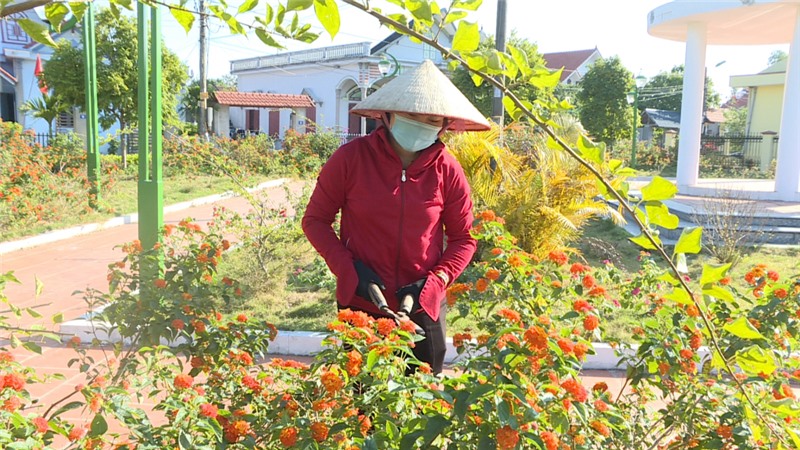 Người dân xã Cẩm Hải, TP Cẩm Phả cắt tỉa tuyến đường hoa.