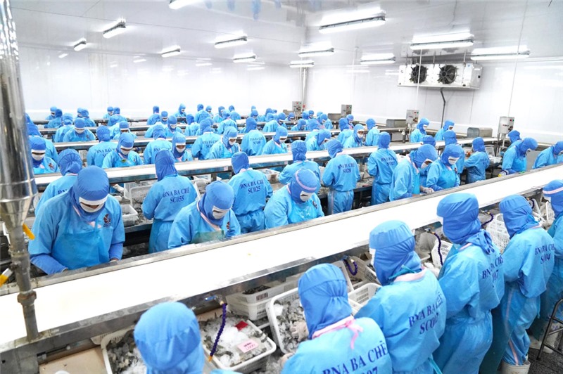 Sơ chế tôm tại Công ty CP Thủy sản BNA Ba Chẽ (huyện Ba Chẽ).