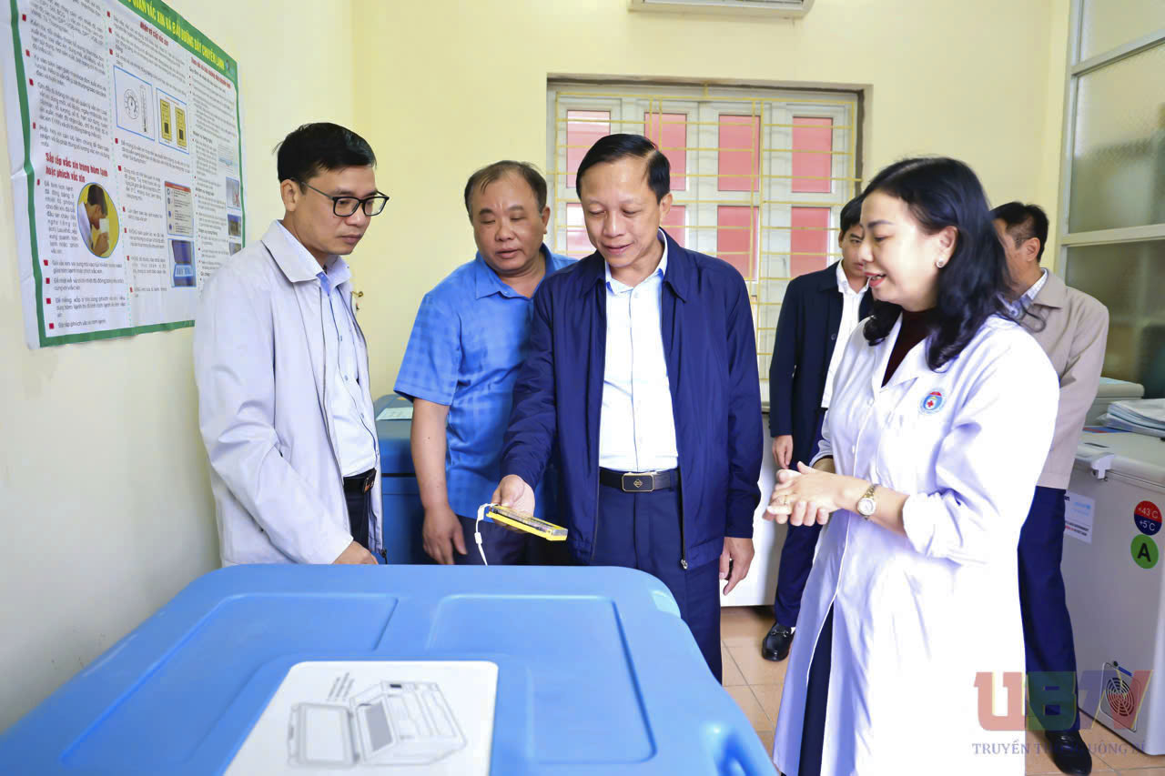 Đồng chí Nguyễn Chiến Thắng, Bí thư Đảng uỷ, Chủ tịch HĐND phường thăm khu vực bảo quản vắc xin tại Trạm y tế.