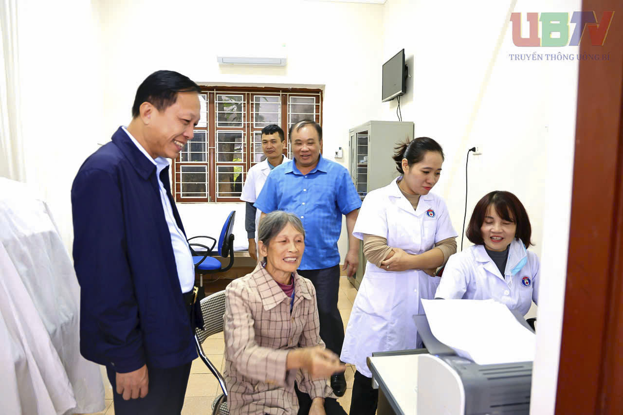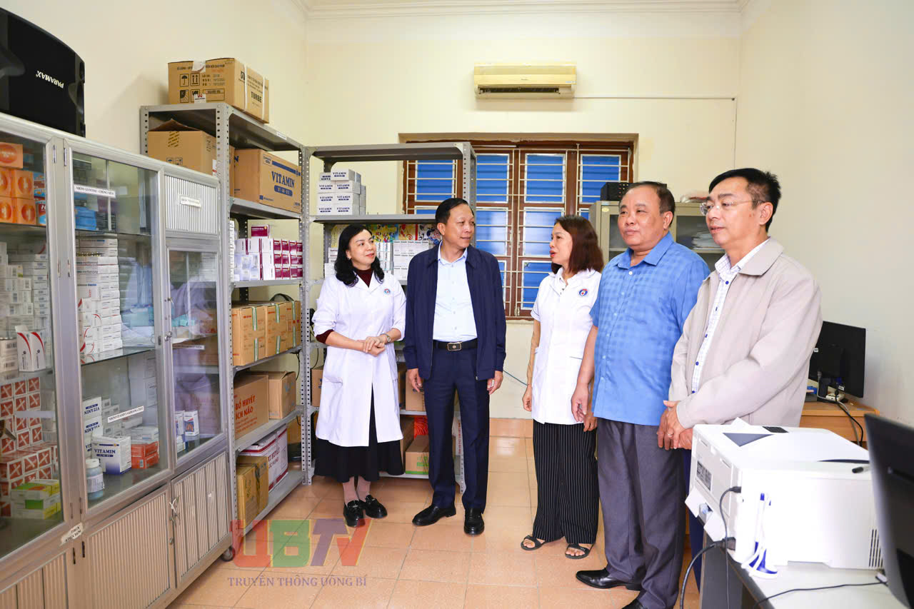 Đồng chí Bí thư Đảng uỷ Nguyễn Chiến Thắng thăm, động viên cán bộ, nhân viên Trạm Y tế phường Uông Bí ngày đầu hoạt động theo mô hình tổ chức mới