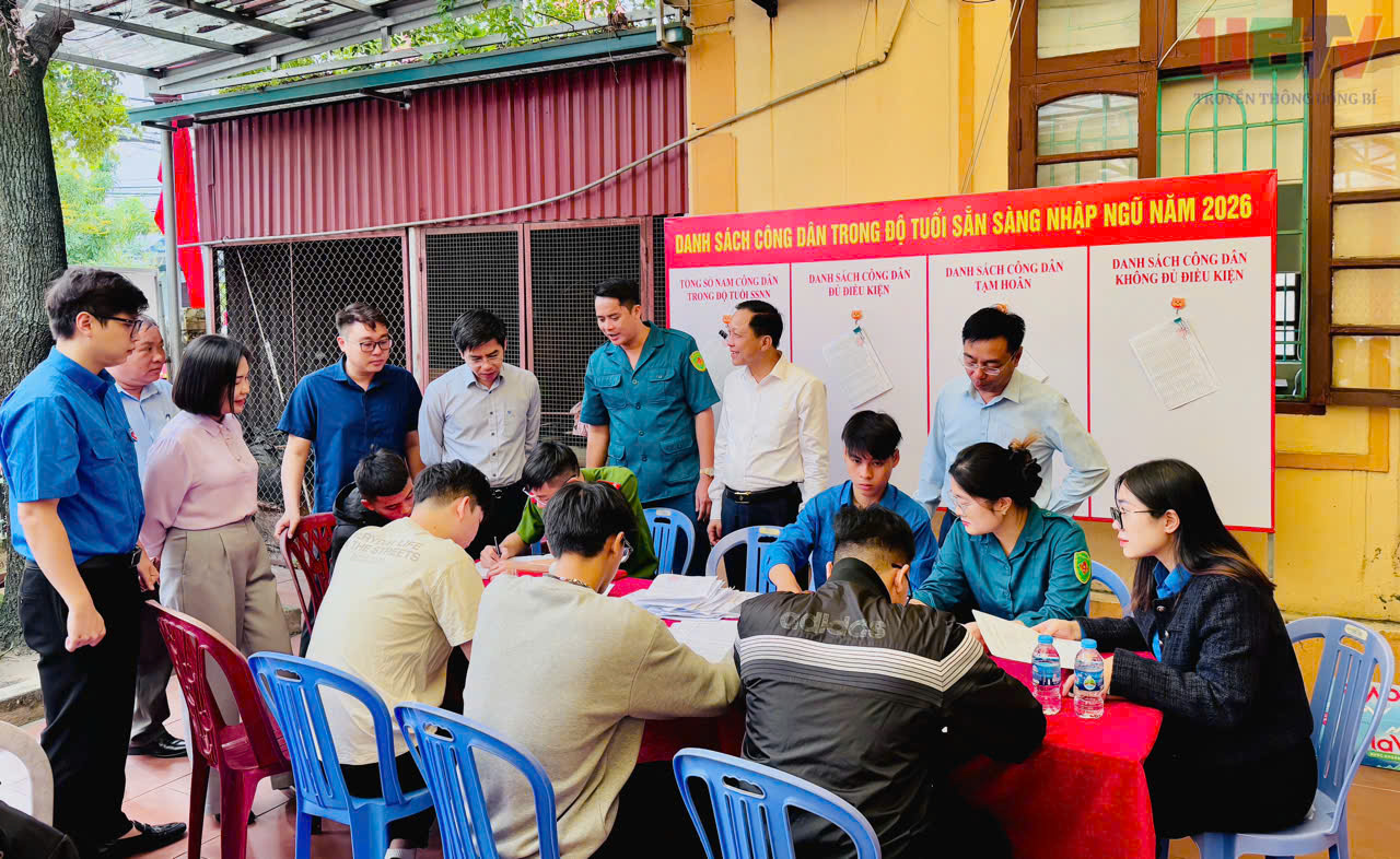 Đồng chí Bí thư Đảng uỷ Nguyễn Chiến Thắng kiểm tra công tác sơ tuyển nghĩa vụ quân sự năm 2026.