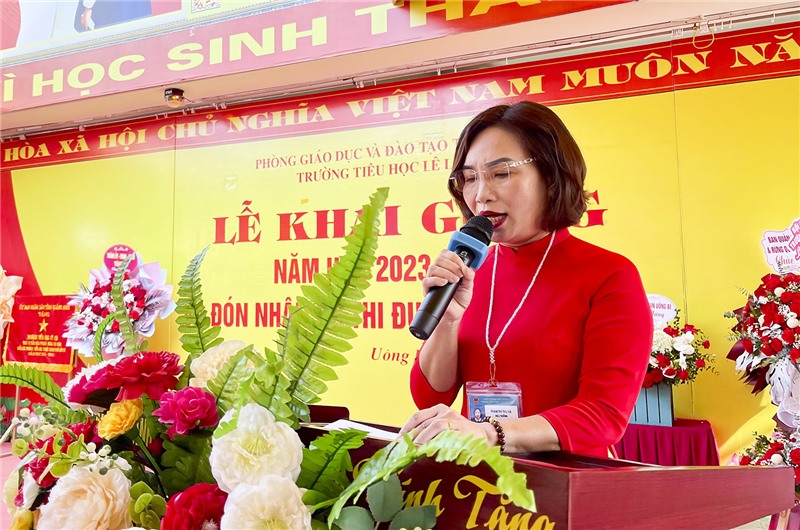 Đồng chí Bí thư chi bộ, hiệu trưởng trường Tiểu học Lê Lợi thông qua diễn văn khai giảng.