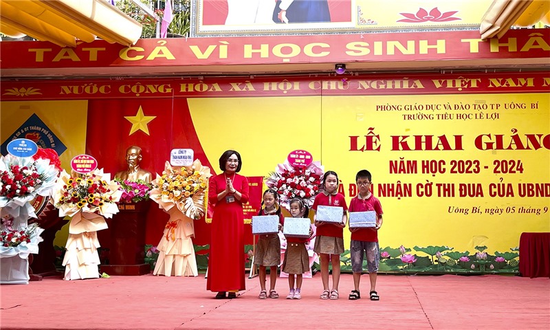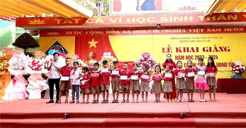 Nhân dịp năm học mới, Trường Tiểu học Lê Lợi đã trao tặng 4 phần quà là bộ sách giáo khoa cùng 15 phần quà cho các em học sinh có hoàn cảnh khó khăn vươn, động viên các em nỗ lực vươn lên trong học tập.