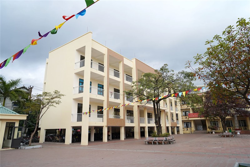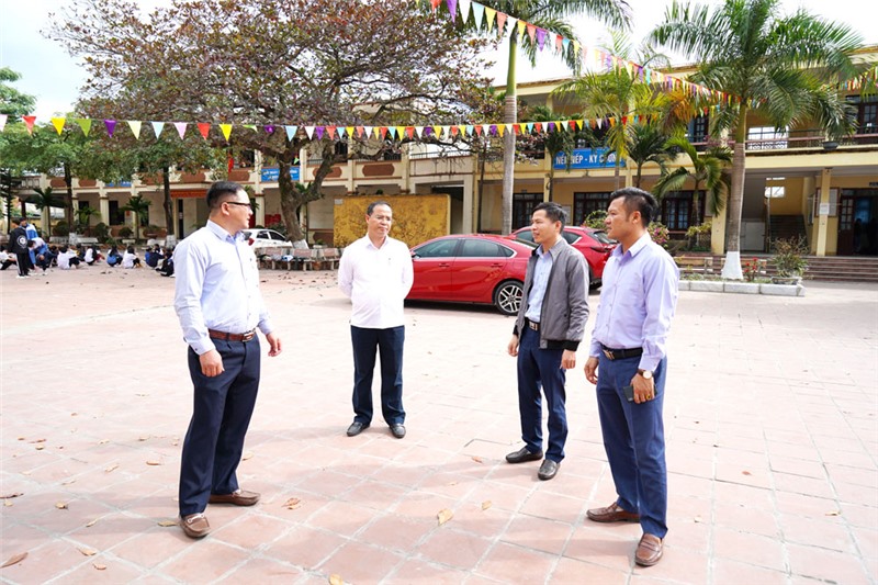 Đồng chí Phó Chủ tịch UBND thành phố kiểm tra Công trình Nhà học 3 tầng và nhà thi đấu đa năng Trường THCS Trần Quốc Toản.