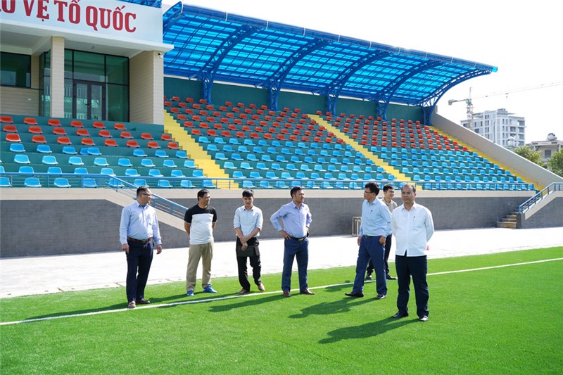 Đồng chí Phó Chủ tịch UBND thành phố kiểm tra Công trình sân vận động trung tâm tại phường Quang Trung.