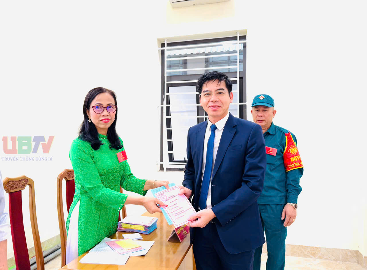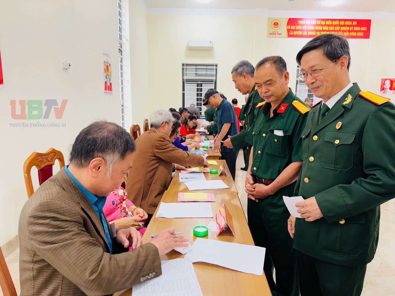 Đồng chí Chủ tịch UBND phường Uông Bí Nguyễn Đức Hòa dự khai mạc bầu cử tại Tổ bầu cử khu Thanh Sơn 2
