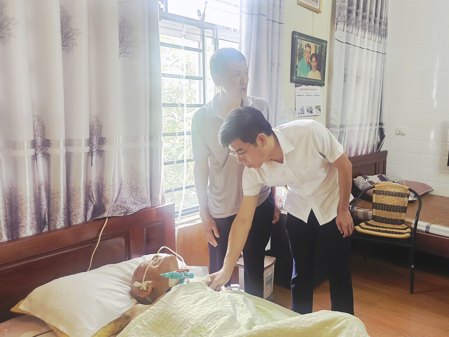 Đồng chí Nguyễn Đức Hòa, Phó Bí thư Đảng ủy, Chủ tịch UBND Phường Uông Bí đến thăm, tặng quà ông Ngô Đình Gắng trú tại khu Quang Trung 7, là nạn nhân chất độc hóa học.