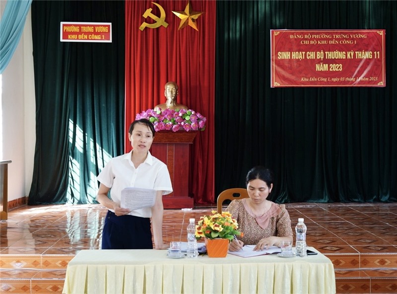 Quang cảnh cuộc sinh hoạt chi bộ khu Đền Công 1 - phường Trưng Vương.
