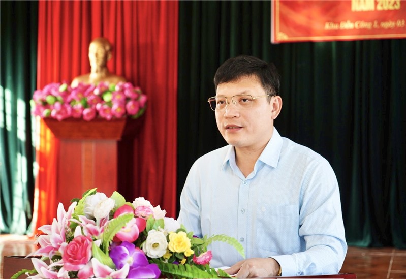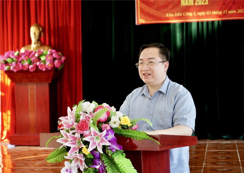 Đồng chí Đặng Xuân Phương - Phó Bí thư Tỉnh uỷ phát biểu tại buổi sinh hoạt chi bộ khu Đền Công 1 - phường Trưng Vương.