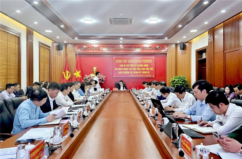 Đồng chí Đặng Xuân Phương, Phó Bí thư Tỉnh ủy và đoàn công tác của tỉnh làm việc với BTV Thành ủy Uông Bí