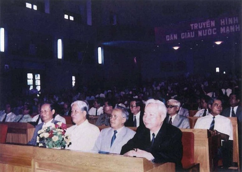 Tổng Bí thư Đỗ Mười và đồng chí Đào Duy Tùng dự Lễ kỷ niệm 25 năm Truyền hình Việt Nam (1970-1995)