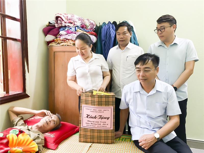 Tại các nơi tới thăm, đồng chí Đào Ngọc Sơn - Uỷ viên BTV, Trưởng ban Dân vận Thành uỷ, Chủ tịch UB MTTQ Thành phố đã ân cần hỏi thăm sức khoẻ cuộc sống của các gia đình người có công. Đồng thời khẳng định, Ðảng bộ, chính quyền và Nhân dân Thành phố Uông Bí luôn ghi nhớ, biết ơn những cống hiến, hy sinh của các thương, bệnh binh, thân nhân liệt sỹ đối với sự nghiệp xây dựng và bảo vệ Tổ quốc. Đồng chí Chủ tịch UB MTTQ Thành phố mong muốn các gia đình tiếp tục khắc phục khó khăn, sống vui, khỏe; phát huy truyền thống cách mạng, giáo dục con cháu thi đua học tập, lao động sản xuất, góp phần vào sự phát triển của quê hương, đất nước.