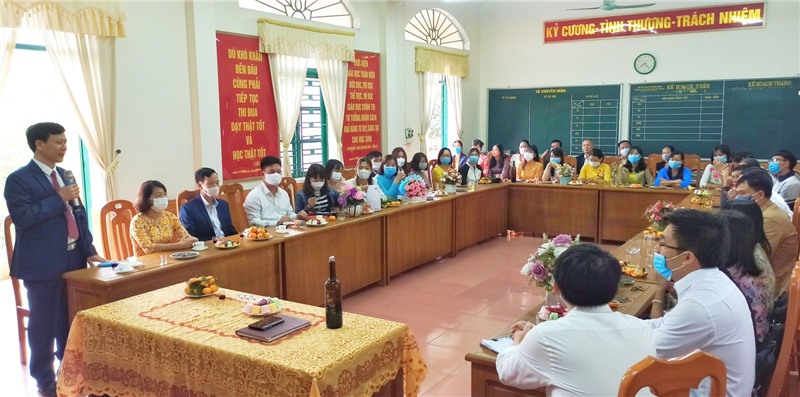 Đồng chí Đỗ Trường Sơn, UVBTV TU, Phó Chủ tịch HĐND thành phố đến thăm, chúc mừng tập thể cán bộ, giáo viên Trường THCS Phương Đông.