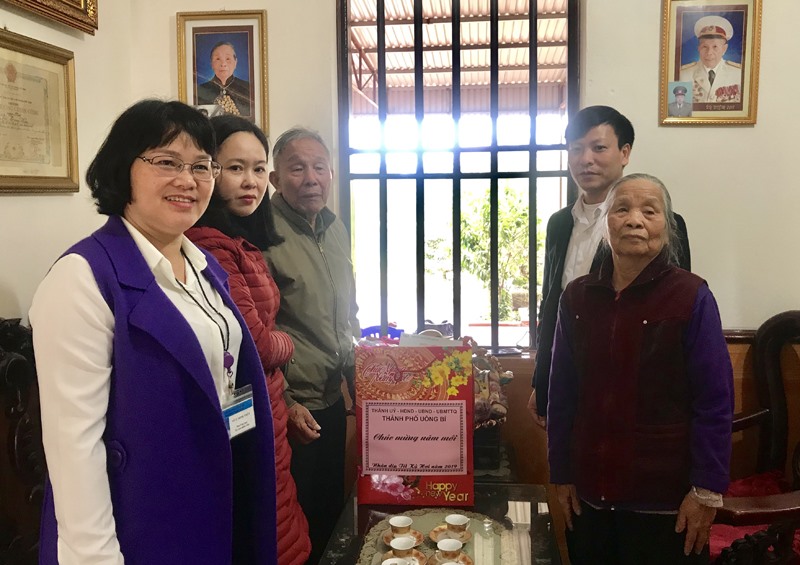 Đoàn đã đến thăm, chúc tết gia đình Mẹ Liệt sỹ Vũ Thị Nhít, trú tại khu 12 và gia đình nạn nhân chất độc da cam Vũ Tiến Đạt, trú tại khu 9, phường Quang Trung; đến thăm, tặng quà gia đìnhThương binh ¾ Nguyễn Thanh Tĩnh, trú tại khu Nam Tân và gia đình Thương binh Bùi Trọng Hẫu, trú tại khu Chạp Khê, phường Nam Khê.