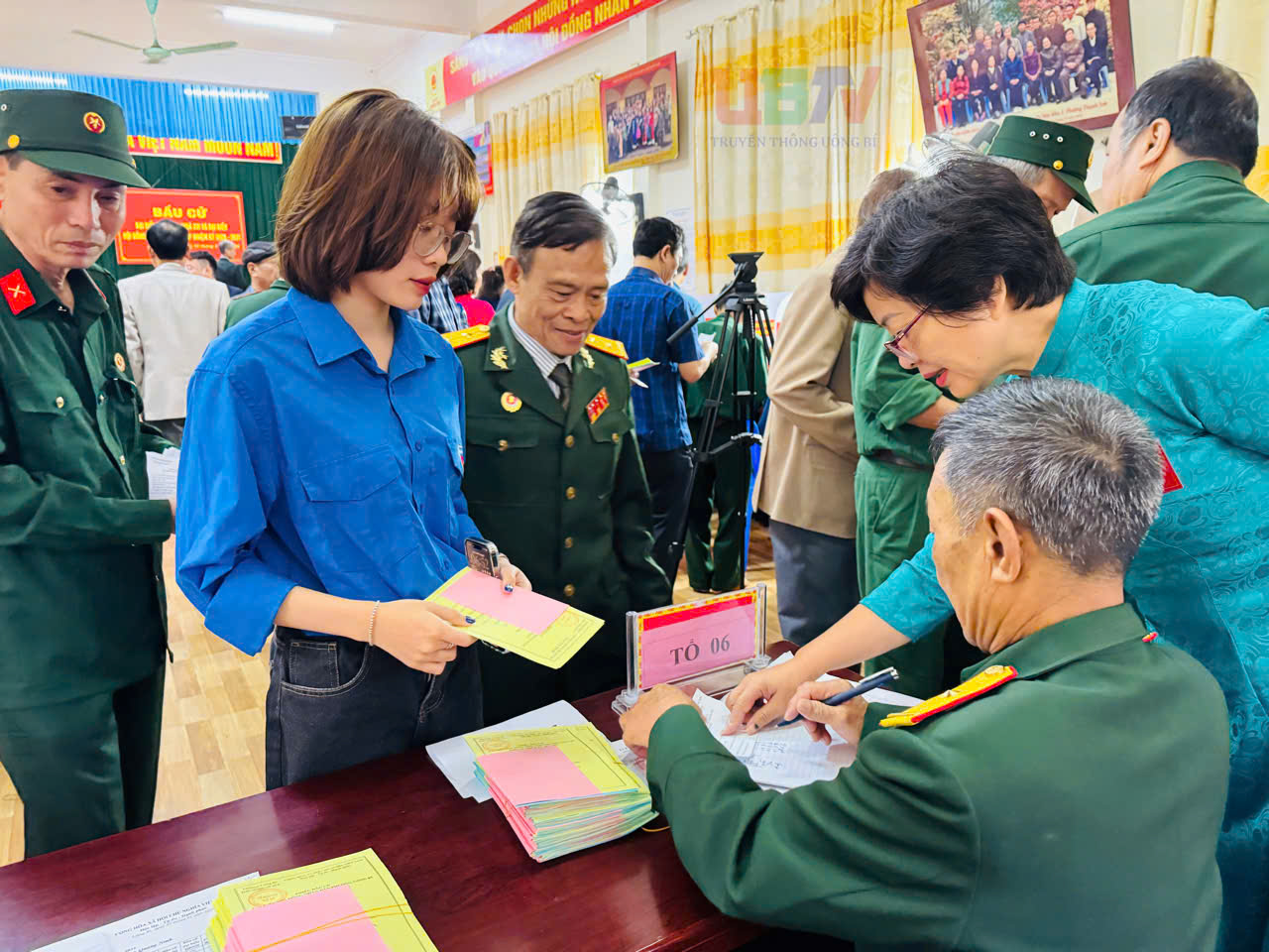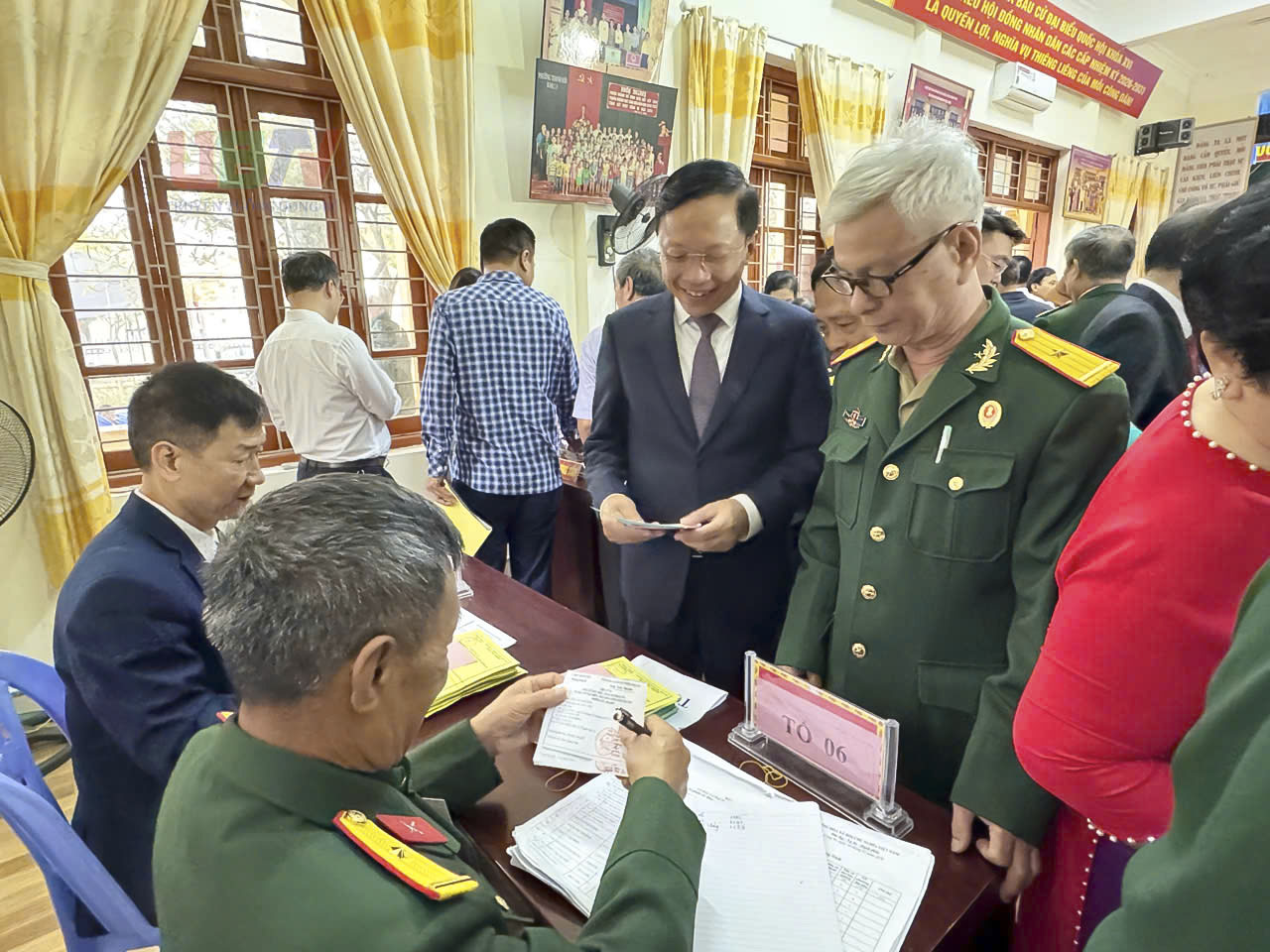 Cử tri nhận phiếu bầu.