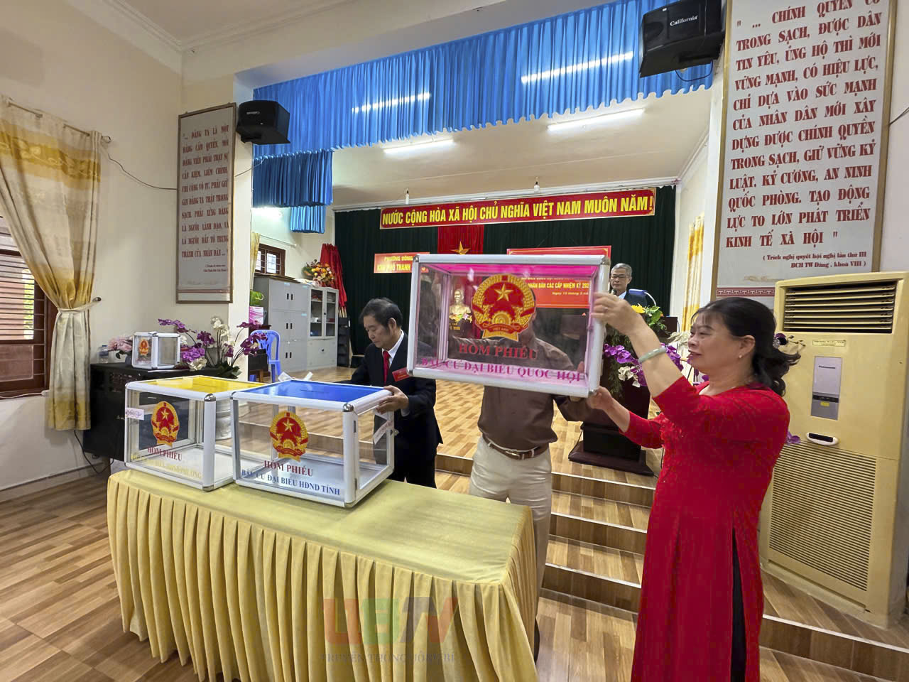 Kiểm tra và niêm phong hòm phiếu.