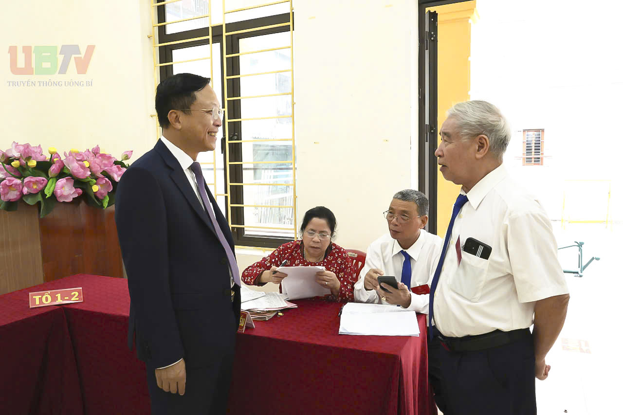 - Đồng chí Chủ tịch UBND phường Uông Bí Nguyễn Đức Hòa dự khai mạc bầu cử tại Tổ bầu cử khu Thanh Sơn 2