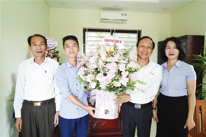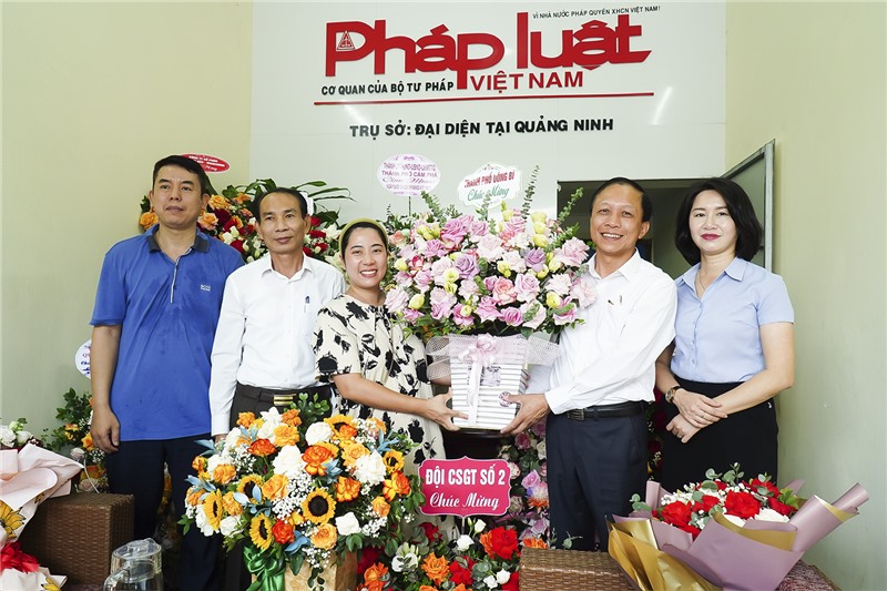 Đồng chí PBT Thường trực Thành ủy chúc mừng các nhà báo thuộc Văn phòng đại diện báo Pháp luật Việt Nam tại Quảng Ninh.
