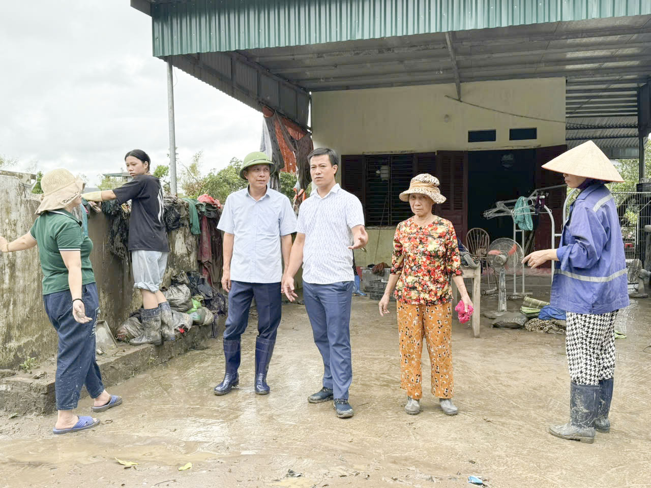 Đồng chí Nguyễn Chiến Thắng, Phó Bí thư Thường trực Thành uỷ, Chủ tịch UBND thành phố động viên và chỉ đạo công tác khắc phục hậu quả do bão số 3 gây ra tại phường Vàng Danh.